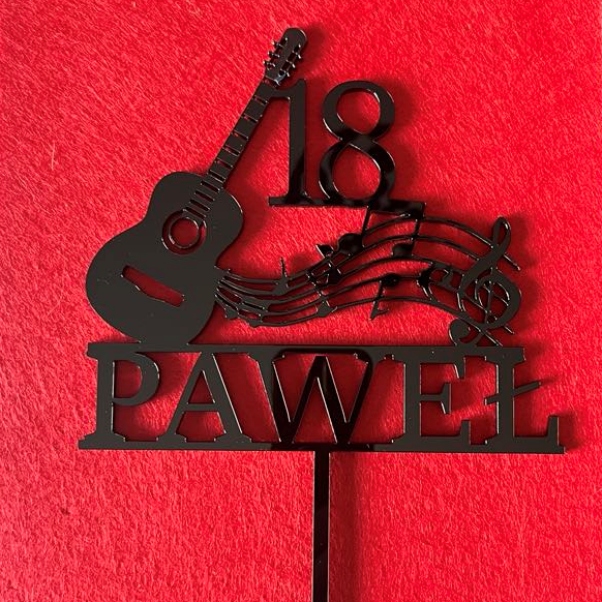 Topper: Urodziny + Wiek + Imię + grafika: gitara