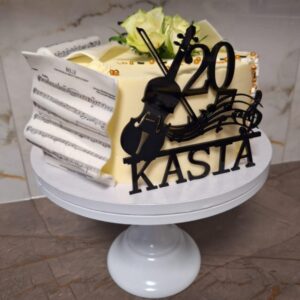 Topper: Urodziny + Wiek + Imię + grafika: skrzypce, wiolonczela